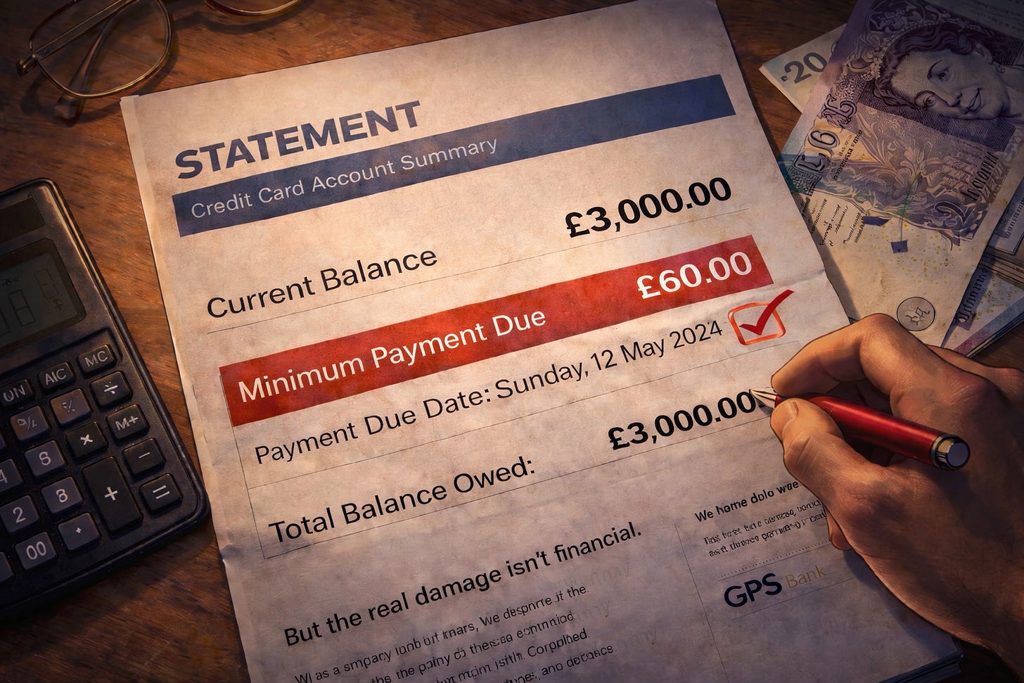 That’s the lie at the centre of it. Not that the number is hidden, it’s right there on the statement. But that paying it feels like progress when really it’s just permission for the debt to stay a little longer.